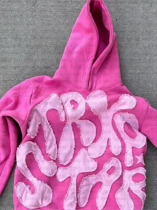 Harajuku Fashion Letter Patch Old Sweatshirt Winter Streetwear High Street Distress Men Women Patchwork Y2k Gothic Trendy Hoodie