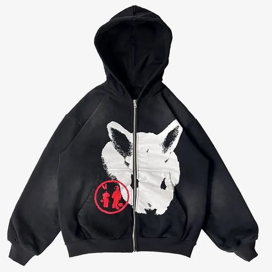2023 Women Graphics Print Hip Hop Zip Up Oversized Sweatshirts Autumn Goth Hoodies Grunge Hooded Jacket Streetwear Y2K Clothing
