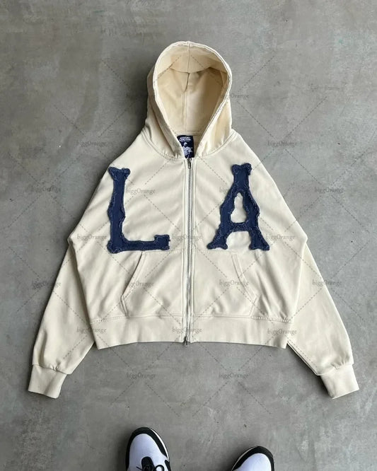 Y2k American High Street Trend Jacket Men Letter Embroidered Zipper Hoodie Harajuku Fashion Retro Oversized Sweatshirt Women